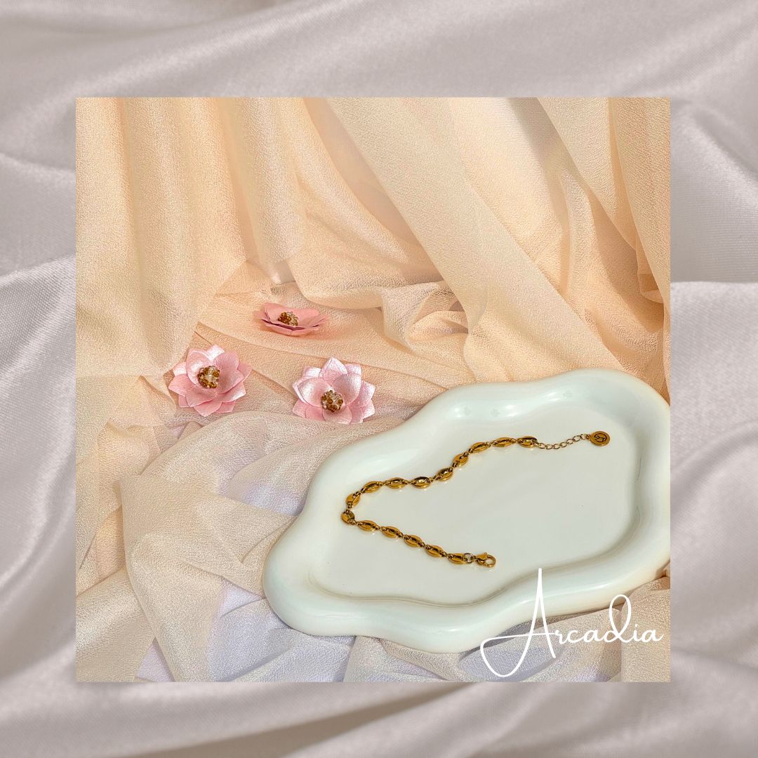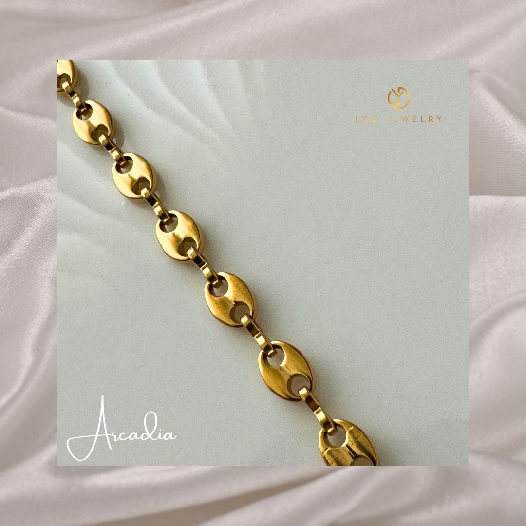 Crafted with a coffee bean-shaped gold-plated chain, the Arcadia Bracelet is Real 18K Gold Plated and is perfect for everyday wear or special occasions. It’s available in various lengths to suit your style and comfort, including:
