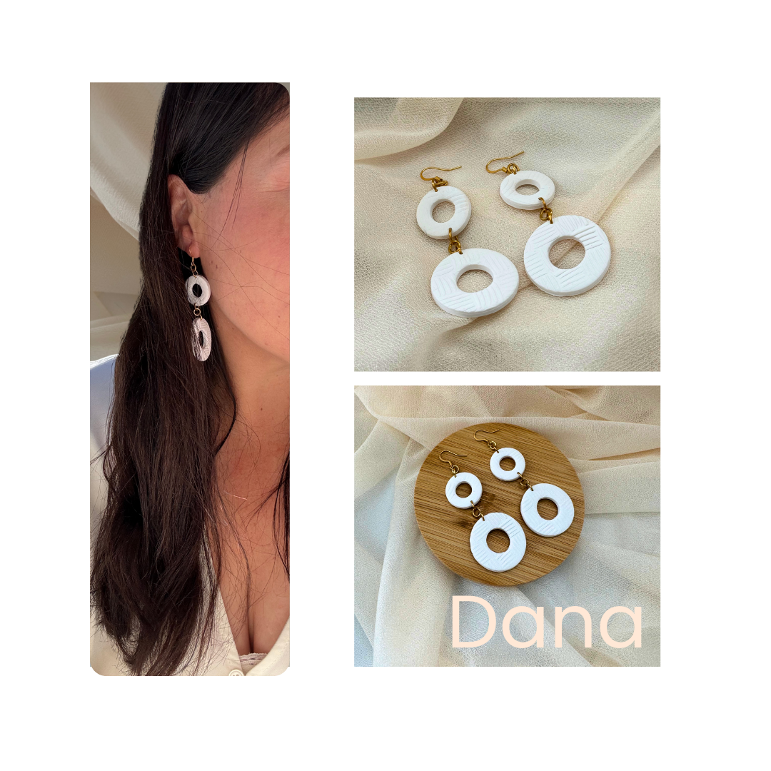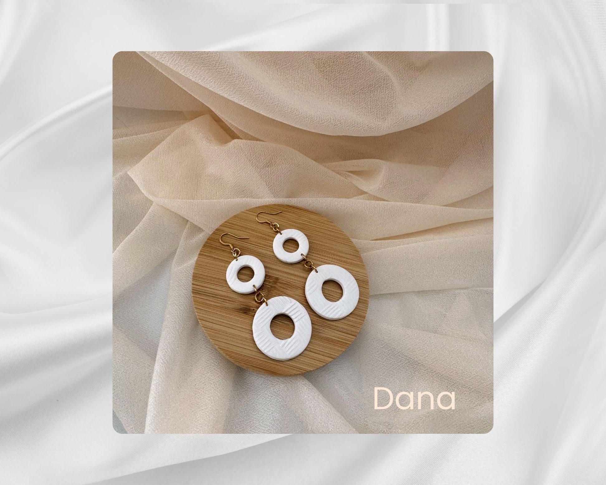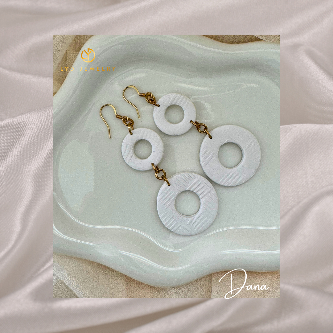 Dana Earrings are a stunning blend of modern design and timeless elegance. Handcrafted from white polymer clay with a beautifully textured finish, these earrings are lightweight and comfortable for all-day wear. The stainless steel hooks, coated with 18k PVD gold, add a touch of luxury while ensuring durability.