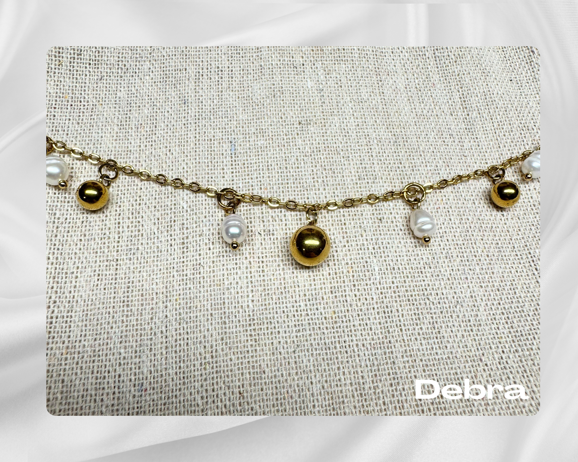 The Debra Bracelet is a delicate yet sophisticated creation, featuring a gold-plated chain with Real 18K Gold Plated round spacers, elegantly paired with natural river pearls. Pearls, often seen as symbols of wisdom, purity, and timeless beauty, make this bracelet a refined statement of grace.