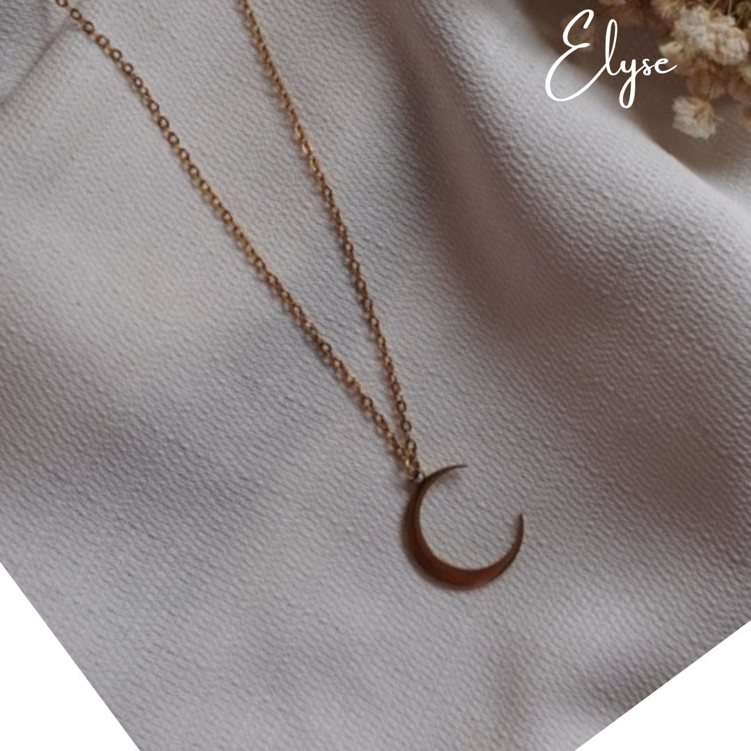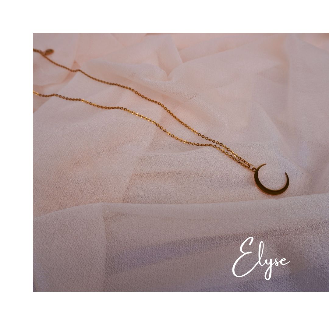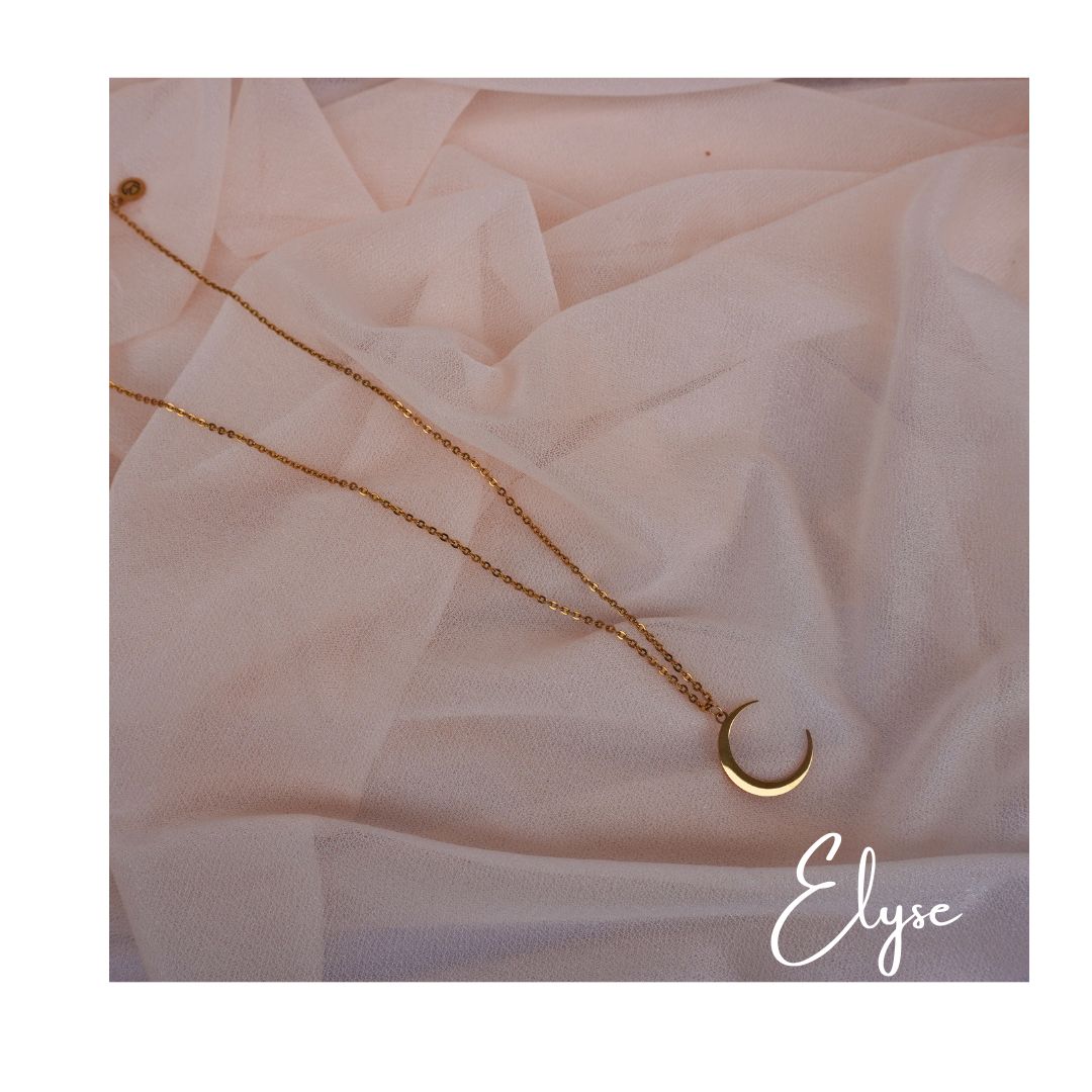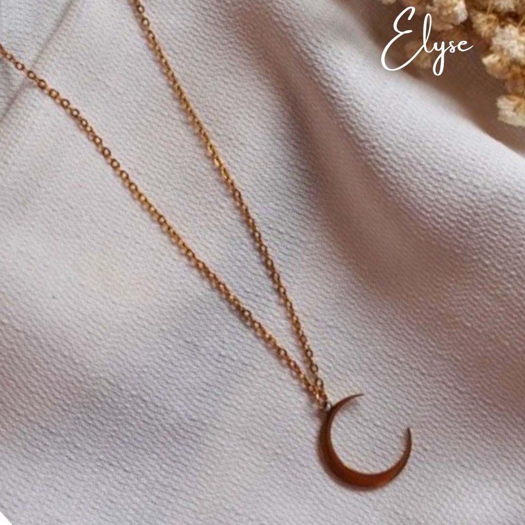 Elyse Necklace features a beautiful soldered chain plated in real 18K gold, adorned with a delicate moon-shaped charm. With a longer chain length of 24 inches (60.96 cm) and a 5 cm (1.97 inches) extension, this piece offers versatility and elegance.
