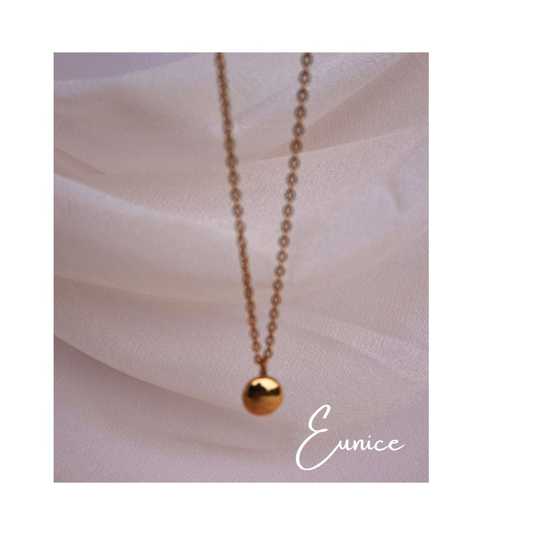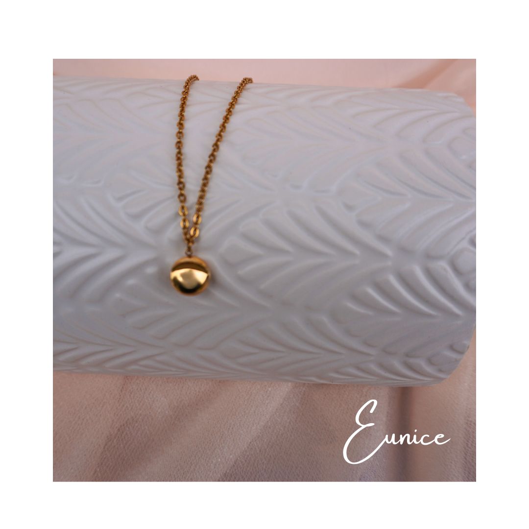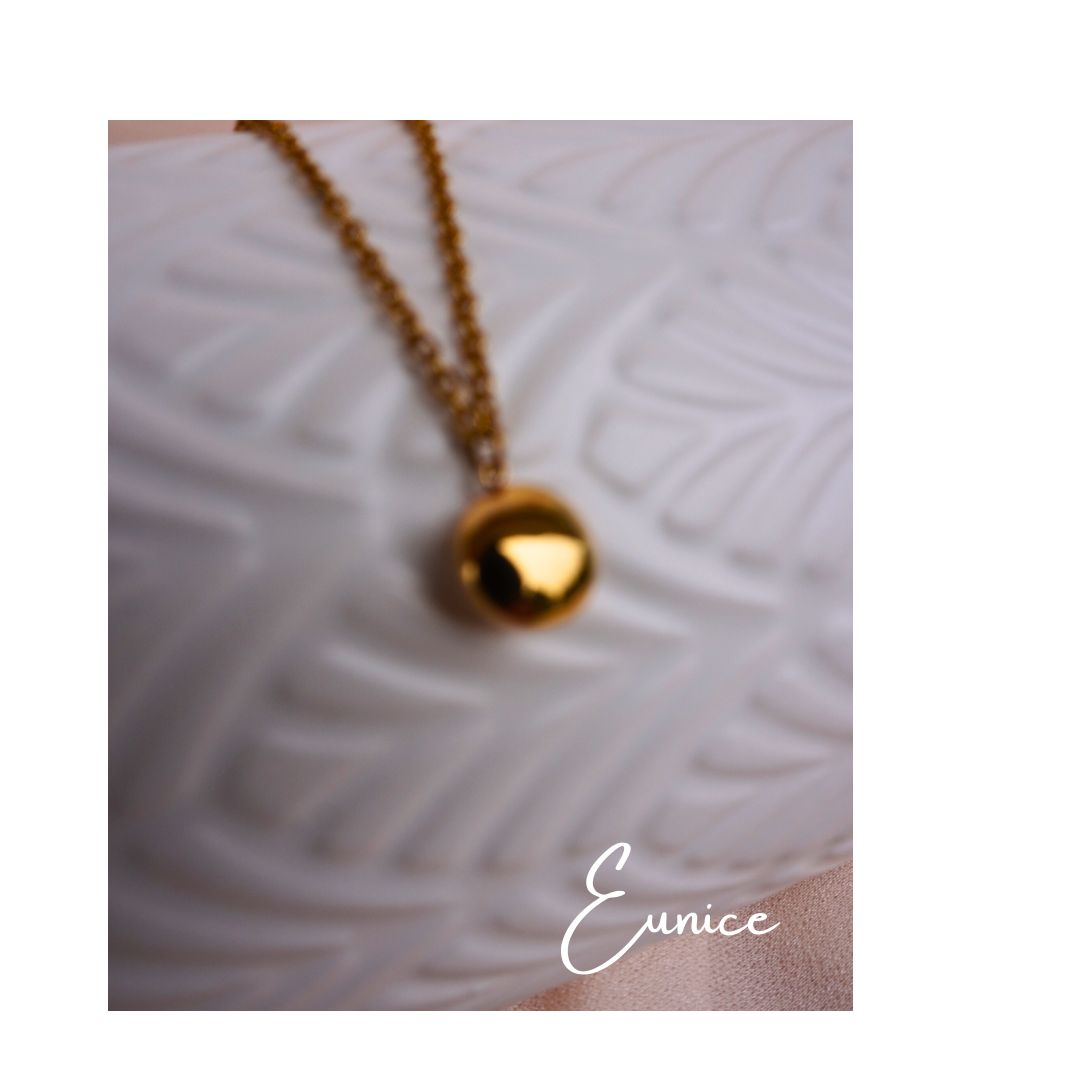 Eunice Necklace is crafted from premium stainless steel 18k pvd gold plating chain, with a stunning flat round pendant, this piece radiates elegance and sophistication.