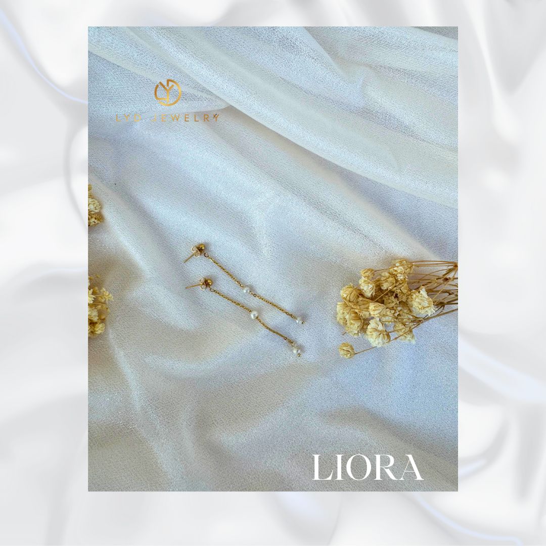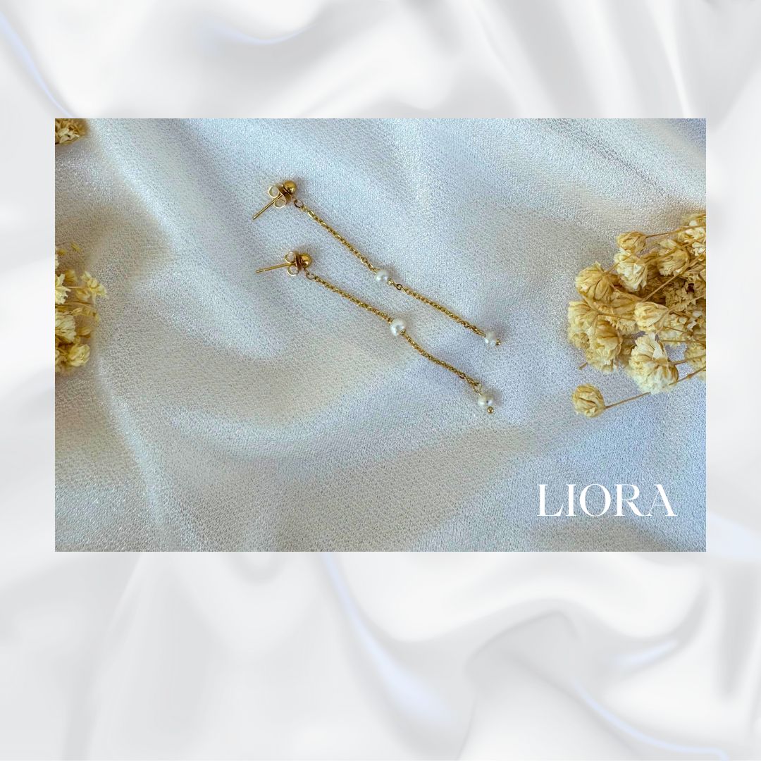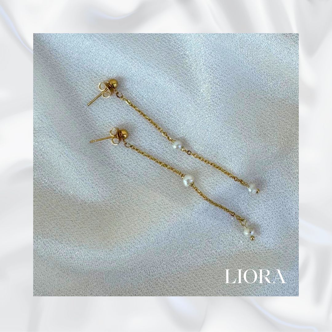 The Liora Earrings, meaning "my light," bring a delicate radiance to your everyday look. Handcrafted with 3-4 mm freshwater pearls, each pearl is meticulously set along a sleek stainless steel chain coated with luxurious 18k PVD gold plating. These earrings are both elegant and versatile, perfect for adding a subtle touch of sophistication to any outfit.