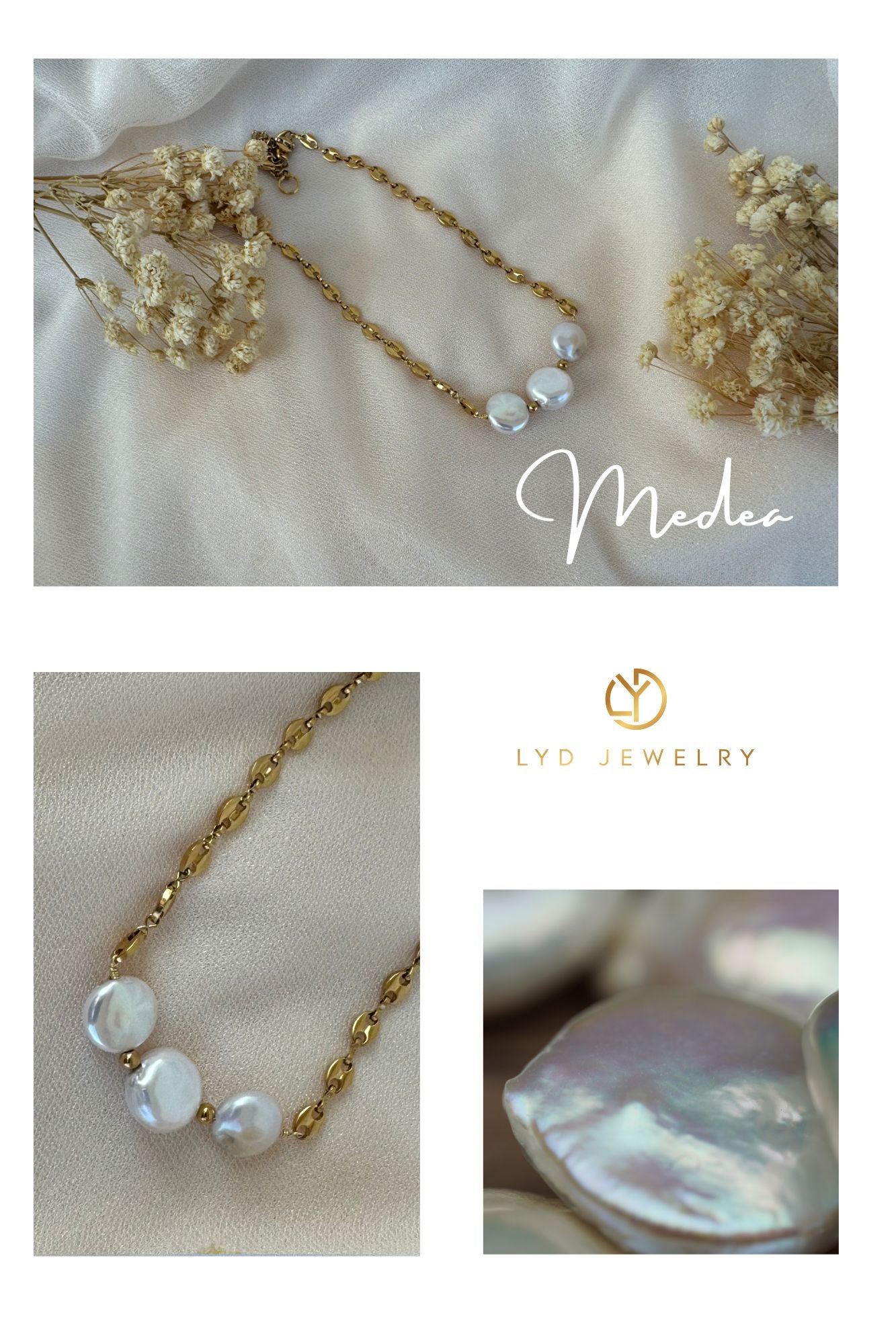 With its minimalist design, the "Medea" necklace exudes timeless elegance, making it an ideal accessory for any occasion, from casual outings to formal events.