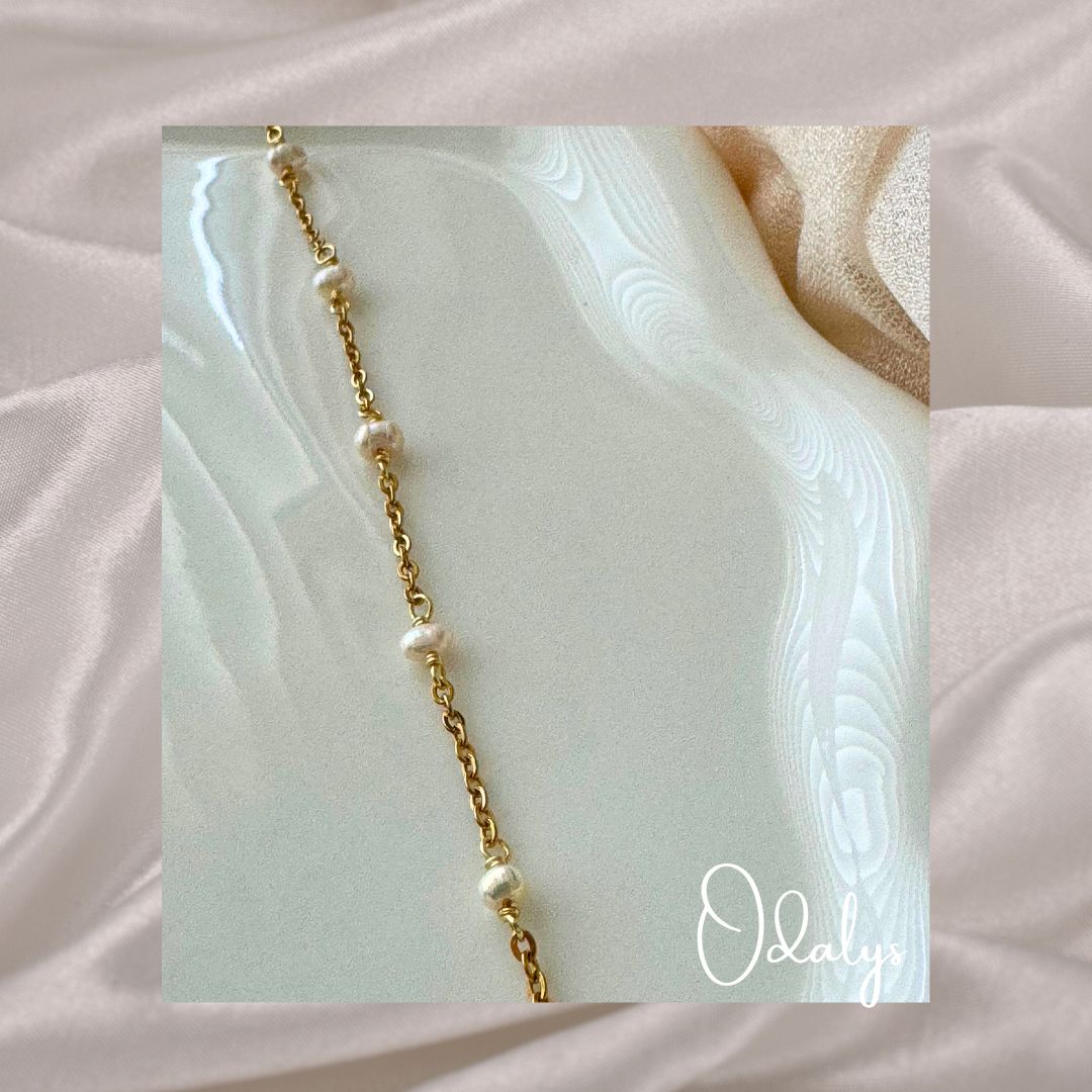 This bracelet is handcrafted with care, ensuring every detail is thoughtfully considered, from the intricate links of the chain to the delicate luster of the pearl.