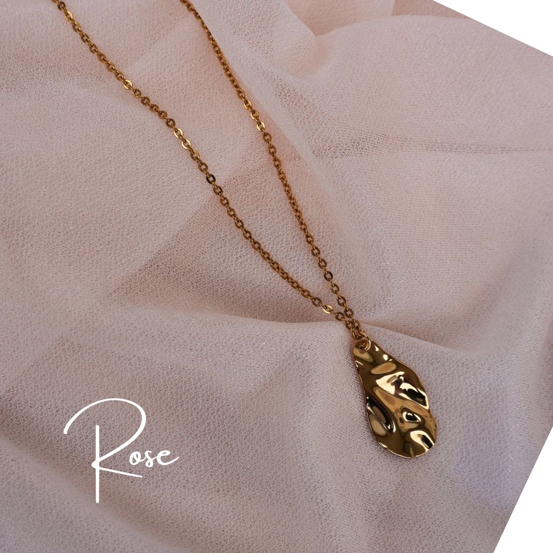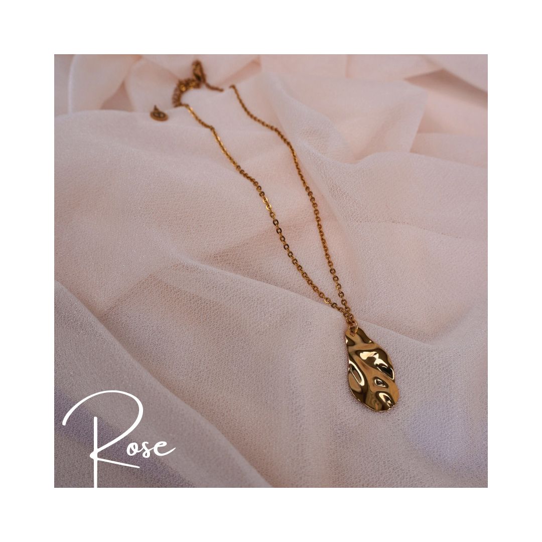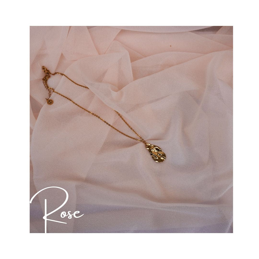The Rose Necklace exudes understated beauty, featuring a textured pendant that brings a hint of organic charm to your look. This necklace is carefully crafted with a soldered chain and plated in real 18K gold, offering both durability and timeless elegance.