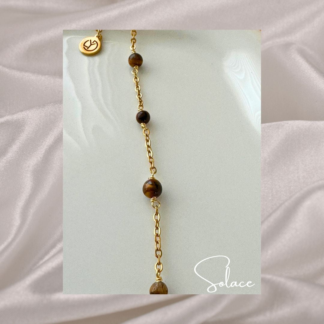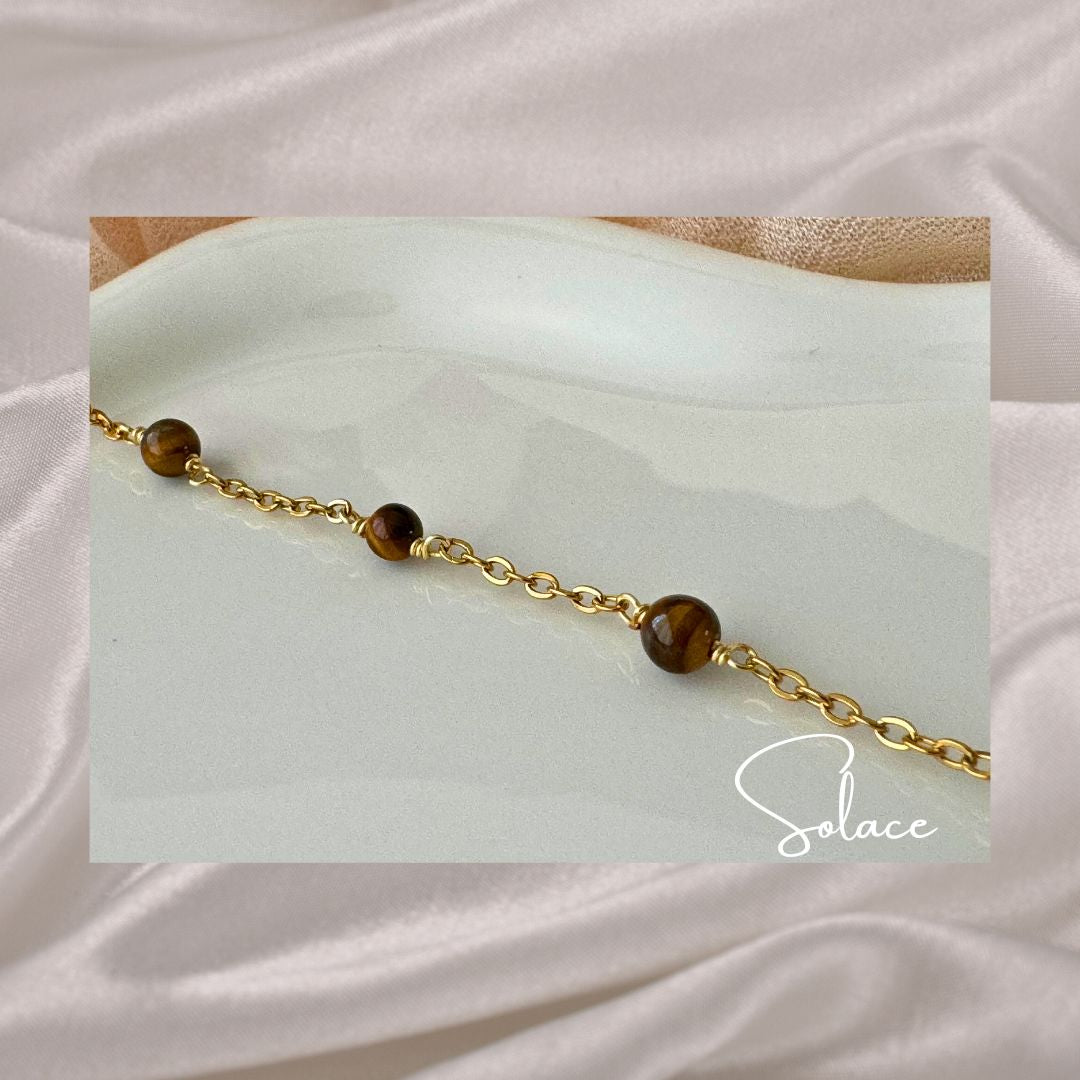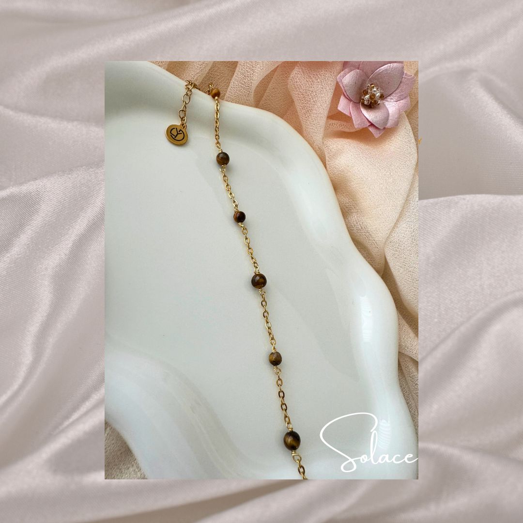 The Solace Bracelet brings together elegance and symbolism, offering a timeless design with the added benefit of the Tiger’s Eye stone’s protective properties. Perfect for both everyday wear and special occasions, it’s a handcrafted piece that blends style and substance effortlessly.